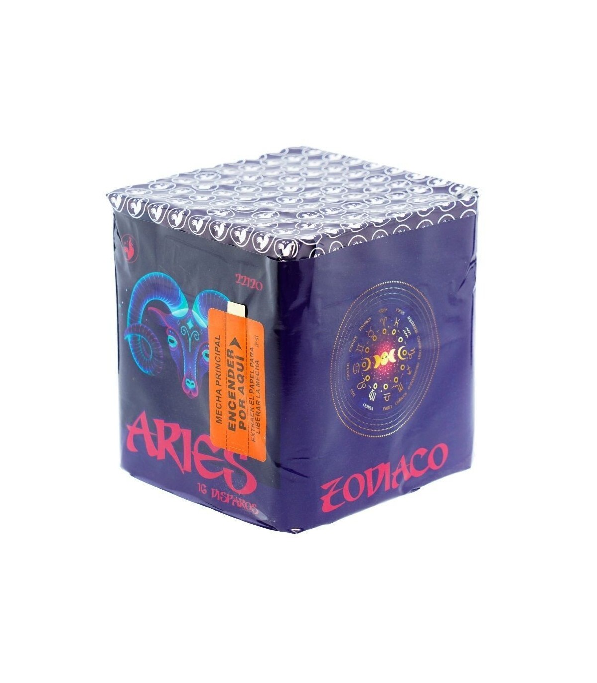 Nº DISPAROS: 16 Uso y efectos: Colocar en el suelo sobre una superficie plana y firme, encender la mecha por su extremo y retirarse. Realiza 16 disparos de palmeras multicolor y cracker con meteoro y arrebato